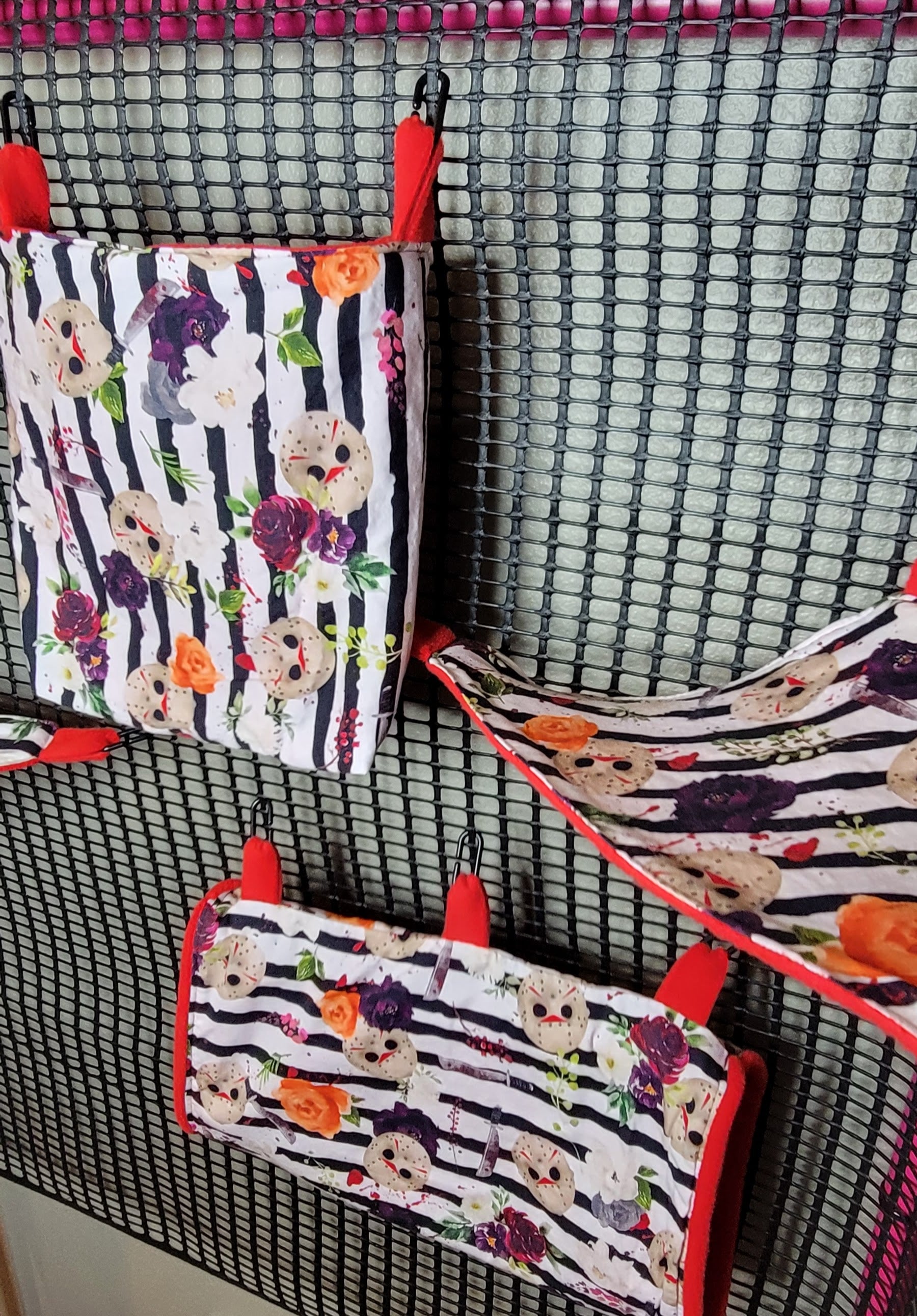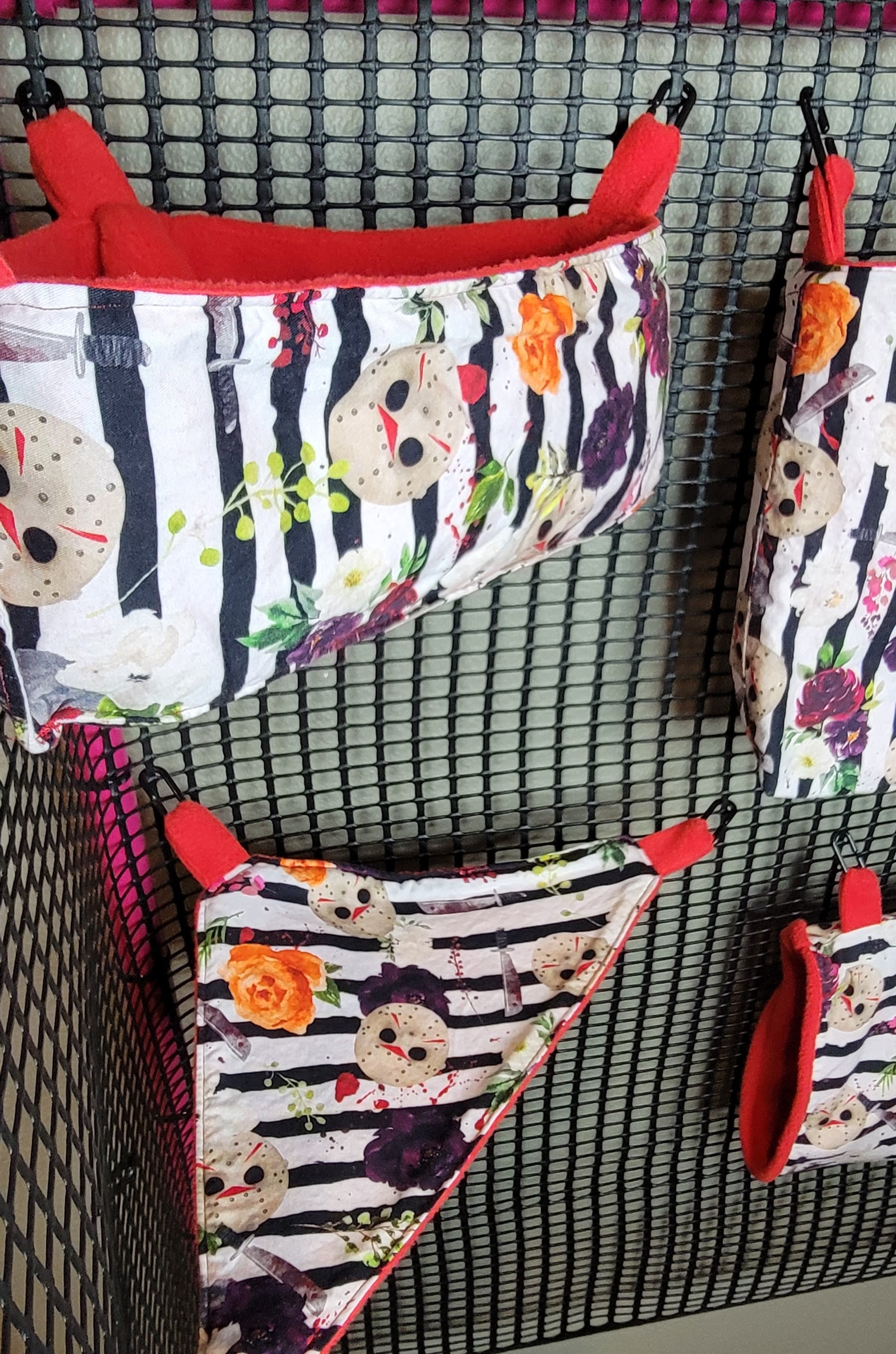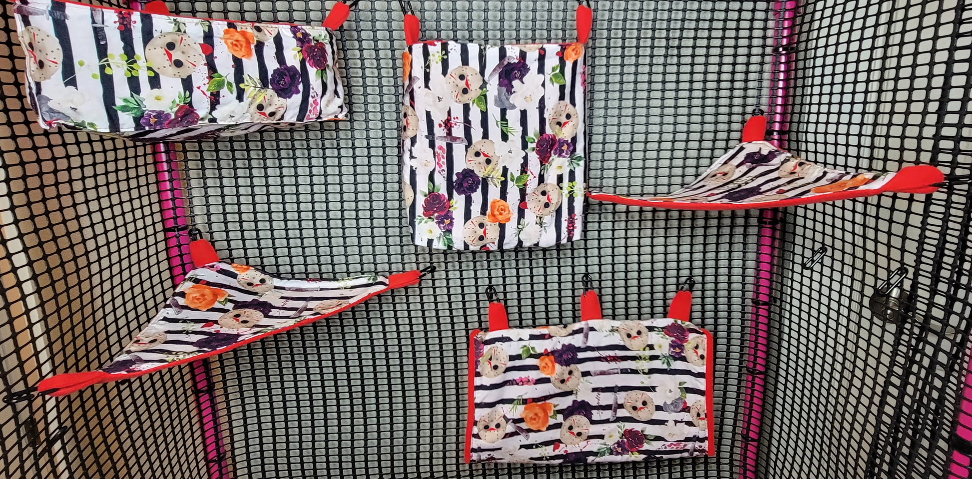 Your gliders will feel right at home when their cage is transformed into Crystal Lake with this floral Friday the 13th premium cotton cage set.