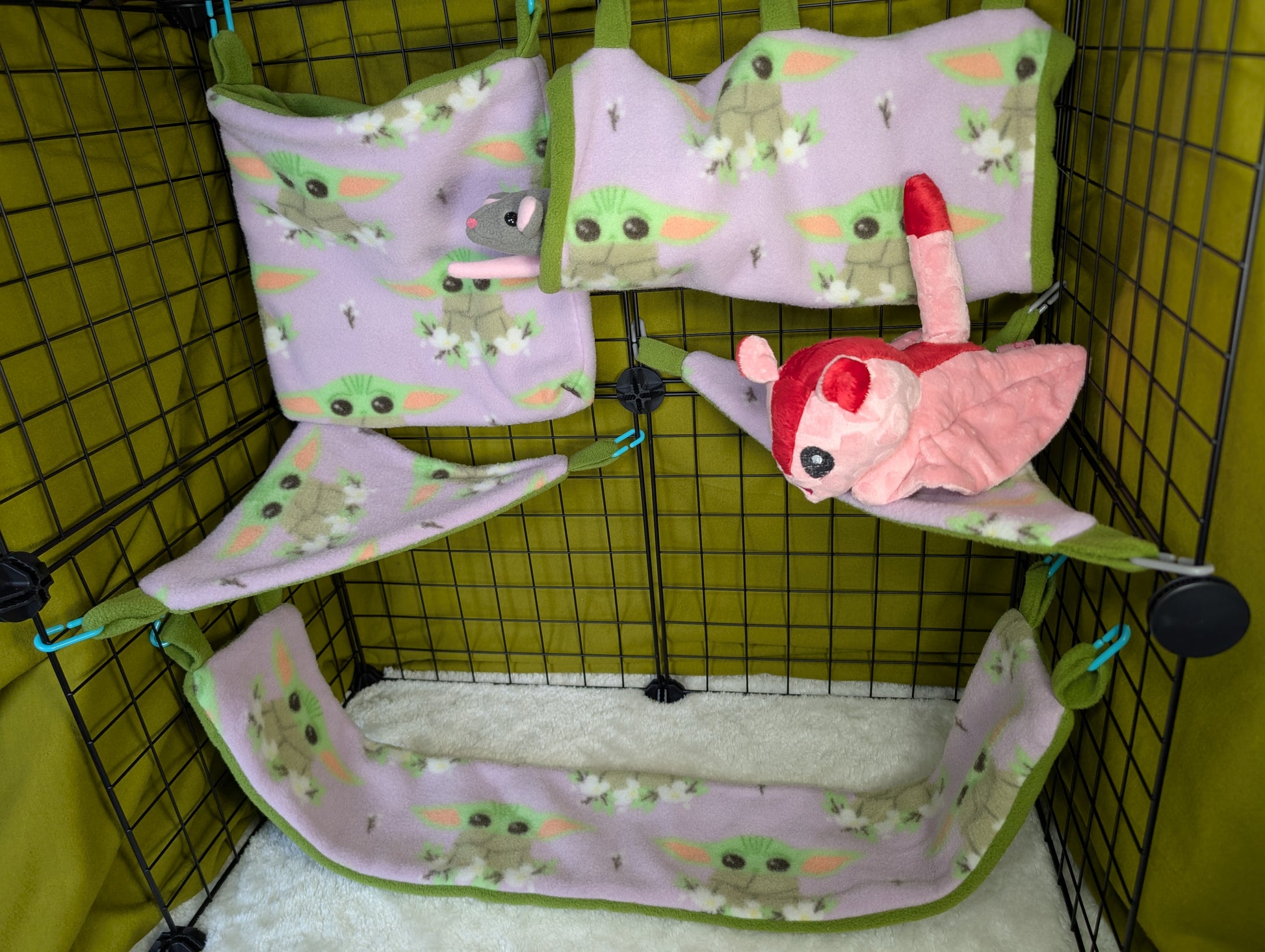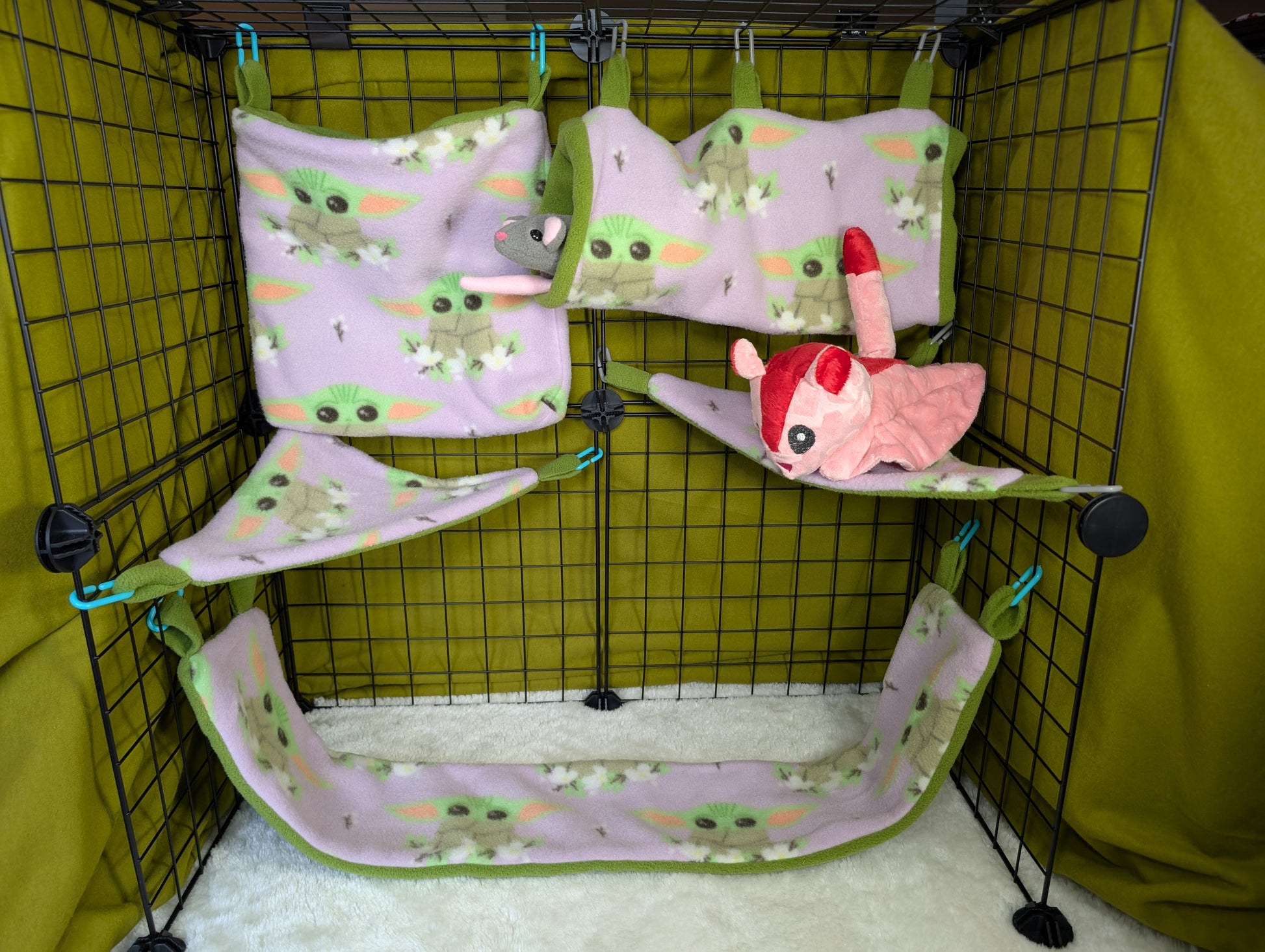 Bring the wisdom of the galaxy to your sugar glider’s home with our Yoda™ Star Wars 5-Piece Cage Set! Inspired by the legendary Jedi Master, this cozy cage set combines galactic style with ultimate comfort and safety for your small pet.